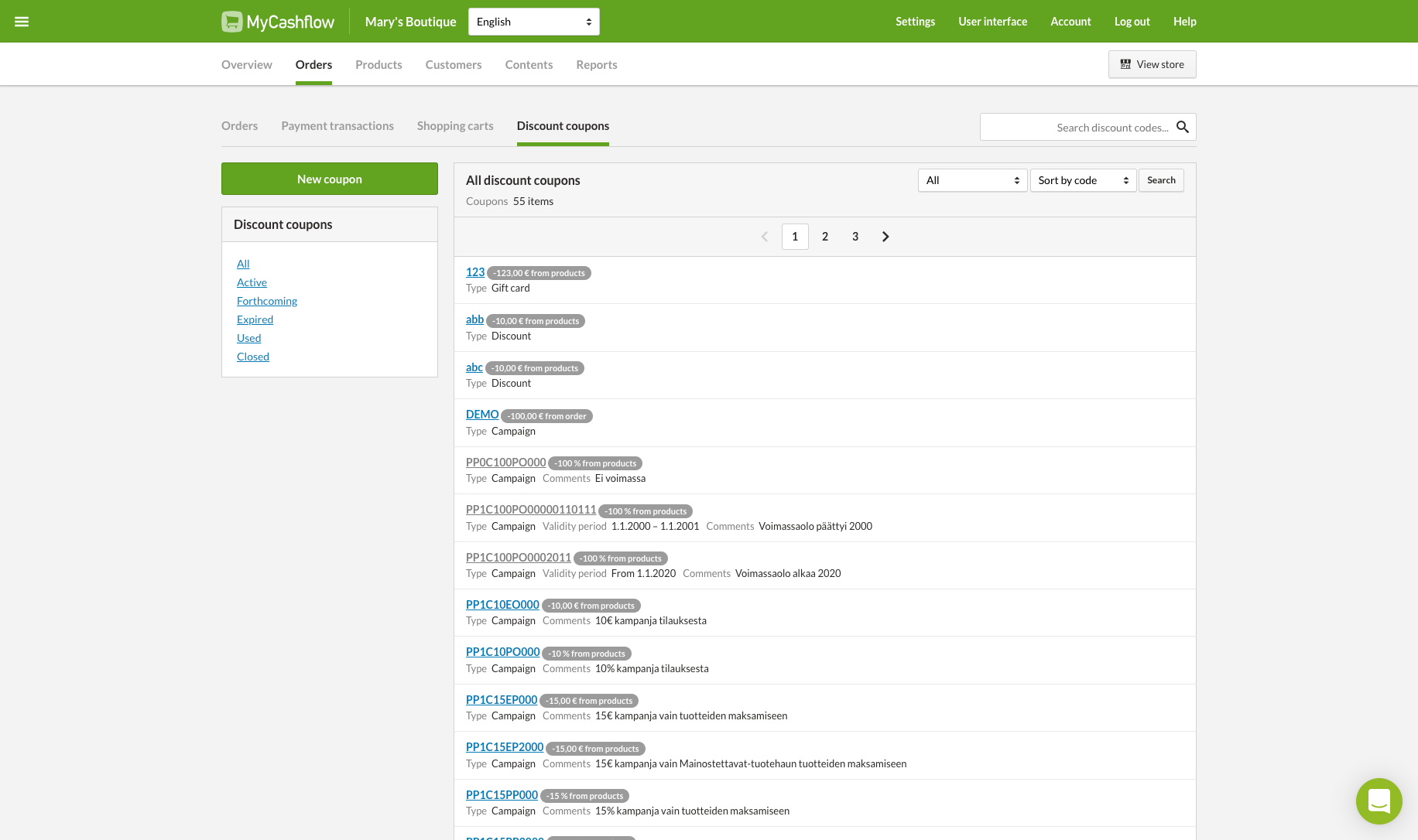 Discount codes