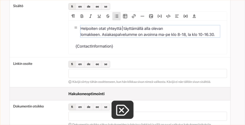 Voit luoda sisältötekstin sekaan linkkejä sekä verkkokaupan sisäisiin että ulkoisiin lähteisiin.